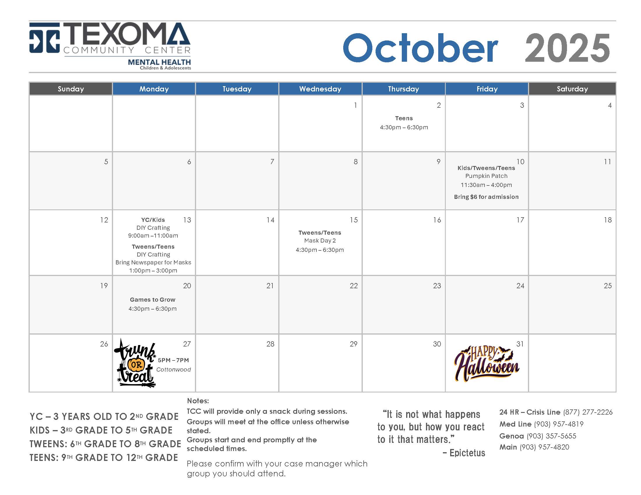 Camp Wonder is a day camp that Texoma Community Center hosts for four weeks in the summer for our Child and Adolescent department. Our Qualified Mental Health Professionals (QMHP’s) take the youth into the community to experience safe, fun events while learning to experience life and cope with the diagnosis that they have been given.