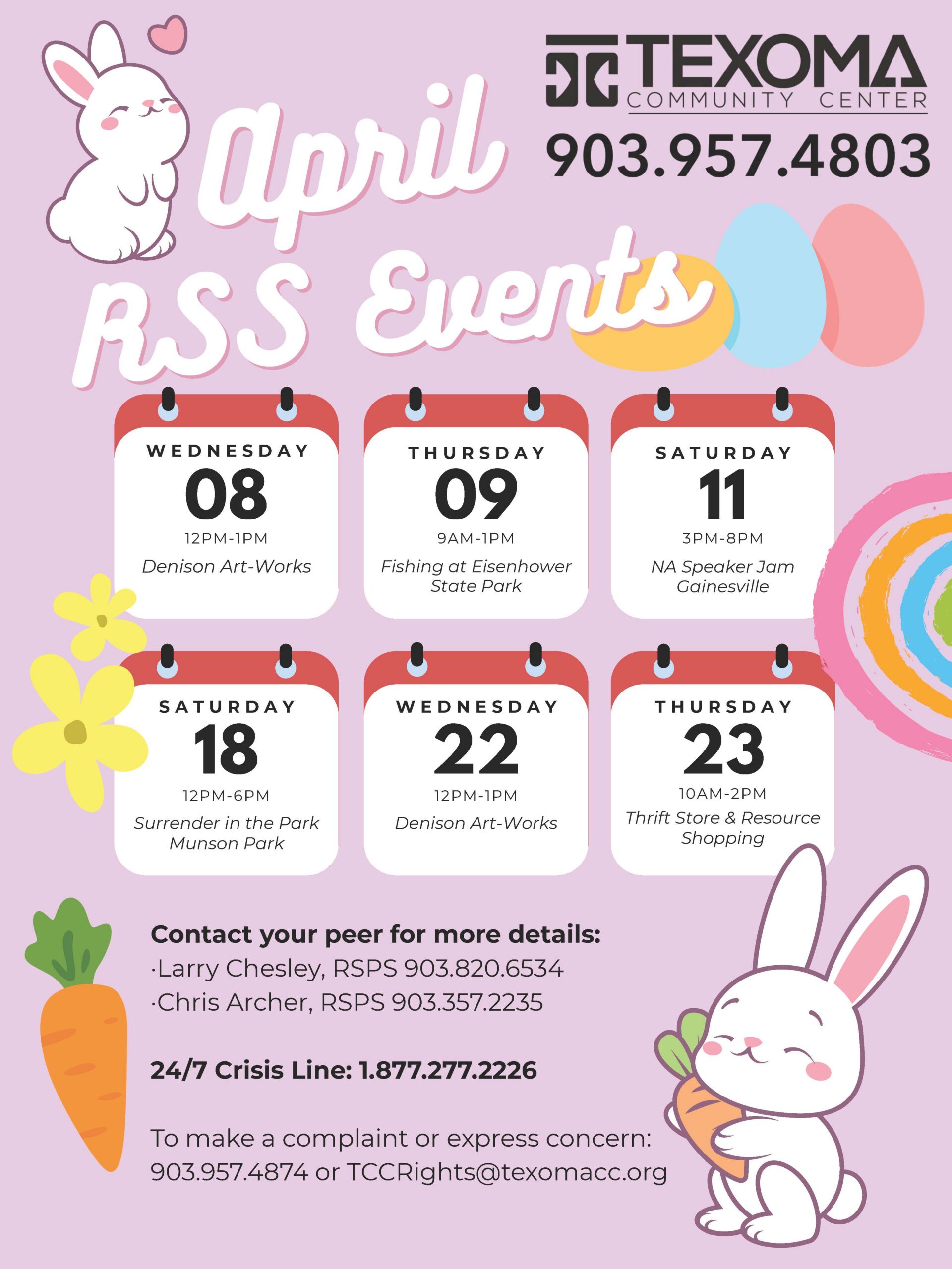 TCC Crisis Line (24 hours): 1 (877) 277-2226